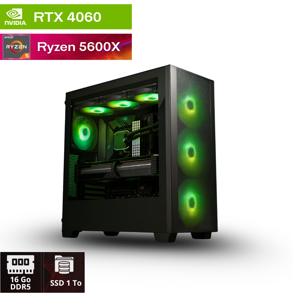 Le GÖNDUL est conçu pour les joueurs et créateurs qui exigent puissance et élégance. Avec son processeur Intel Core i5-14400F et sa RTX 4060 Ti, il délivre des performances de haut niveau pour jouer en 1080p Ultra et 1440p Élevé avec Ray Tracing activé, sans jamais perdre en fluidité. Ses 16 Go de DDR5 RGB assurent vitesse et style, tandis que le SSD NVMe 1 To offre des lancements instantanés. Le refroidissement Jarn 240 garde la machine au frais, même lors des sessions intenses, et le boîtier Phanteks X Pro allie ventilation optimale et design premium. Assemblé, câblé, testé, le GÖNDUL est prêt à briller sur votre bureau comme en jeu.