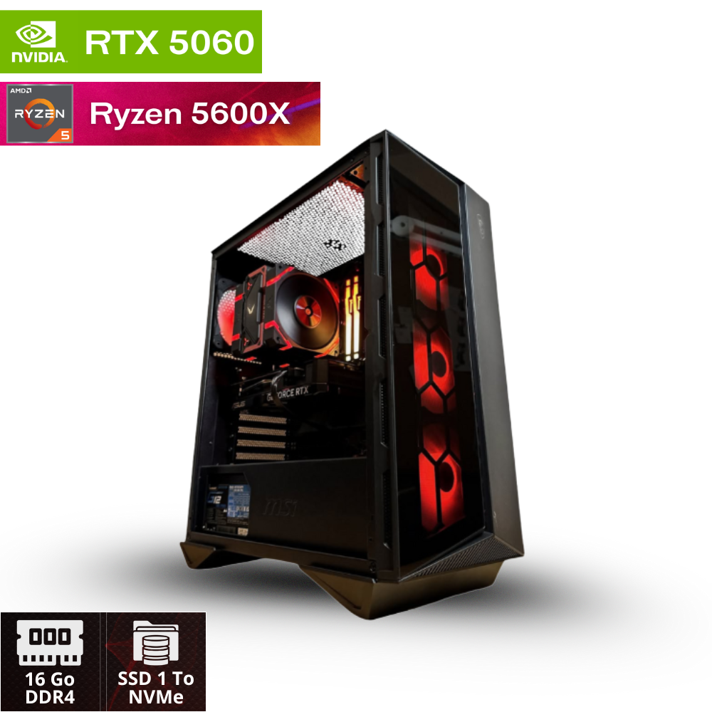 Avec son Ryzen 5 5600X et sa RTX 5060, HLÖKK garantit un jeu fluide et moderne en 1080p Ultra et solide en 1440p, Ray Tracing + DLSS 3 pour sublimer chaque image. Ses 16 Go de DDR4 assurent confort et réactivité, tandis que le SSD NVMe 1 To propulse Windows et vos jeux en un éclair. Le tout prend place dans un boîtier MSI 120A au flux d’air optimisé et discret, alimenté par 650 W pour garder une belle marge d’évolution. Assemblé, câblé, testé et prêt à embarquer pour vos parties.